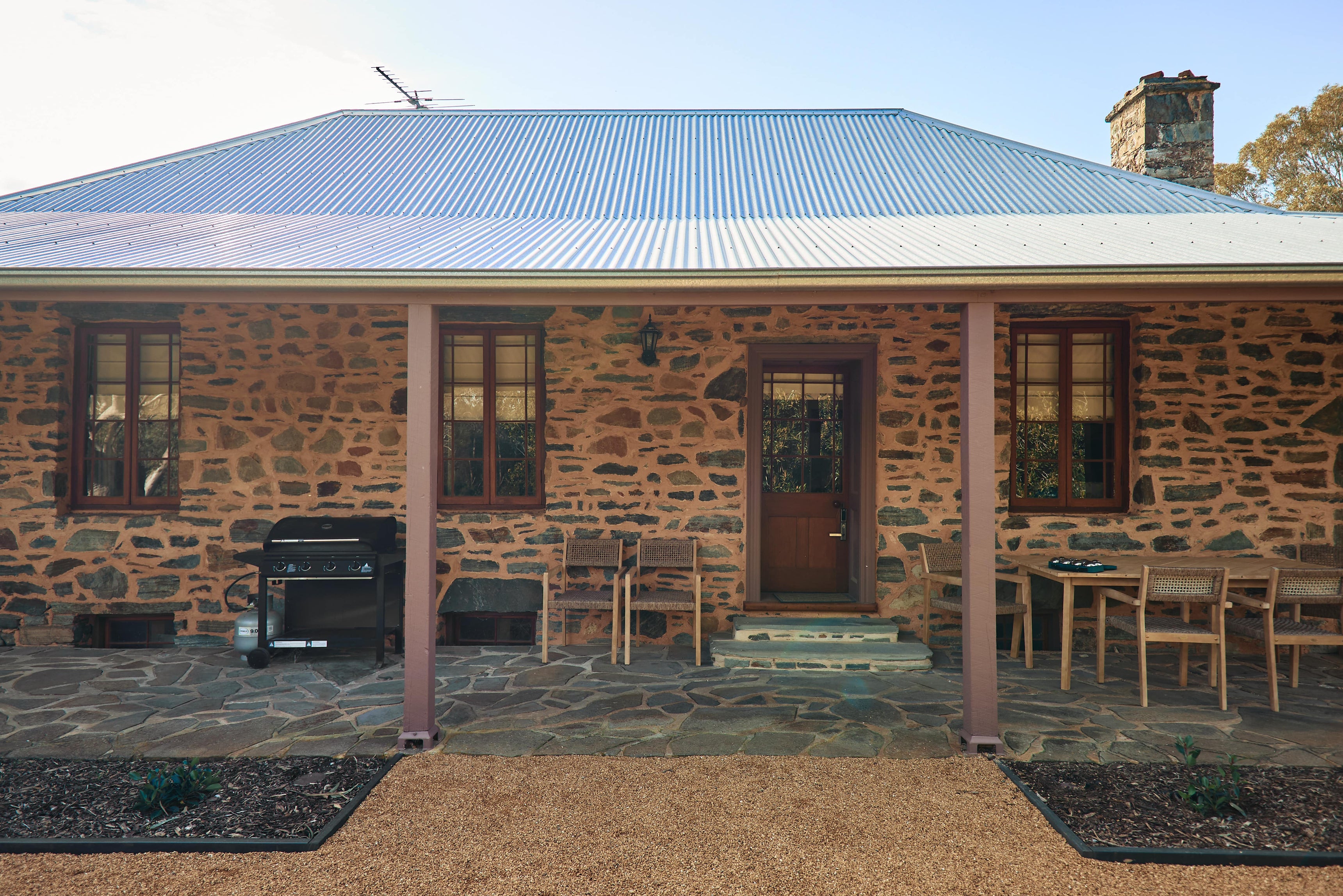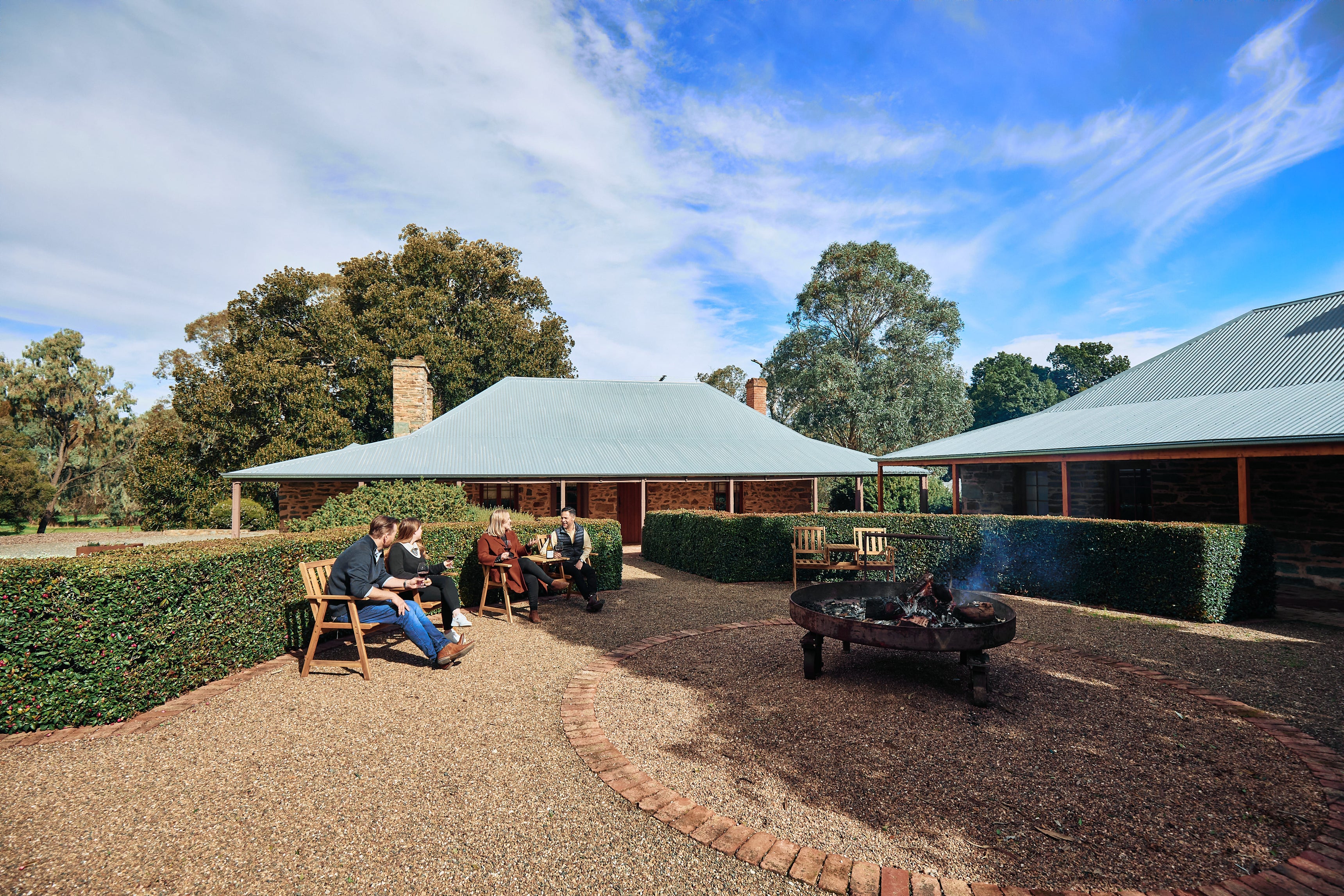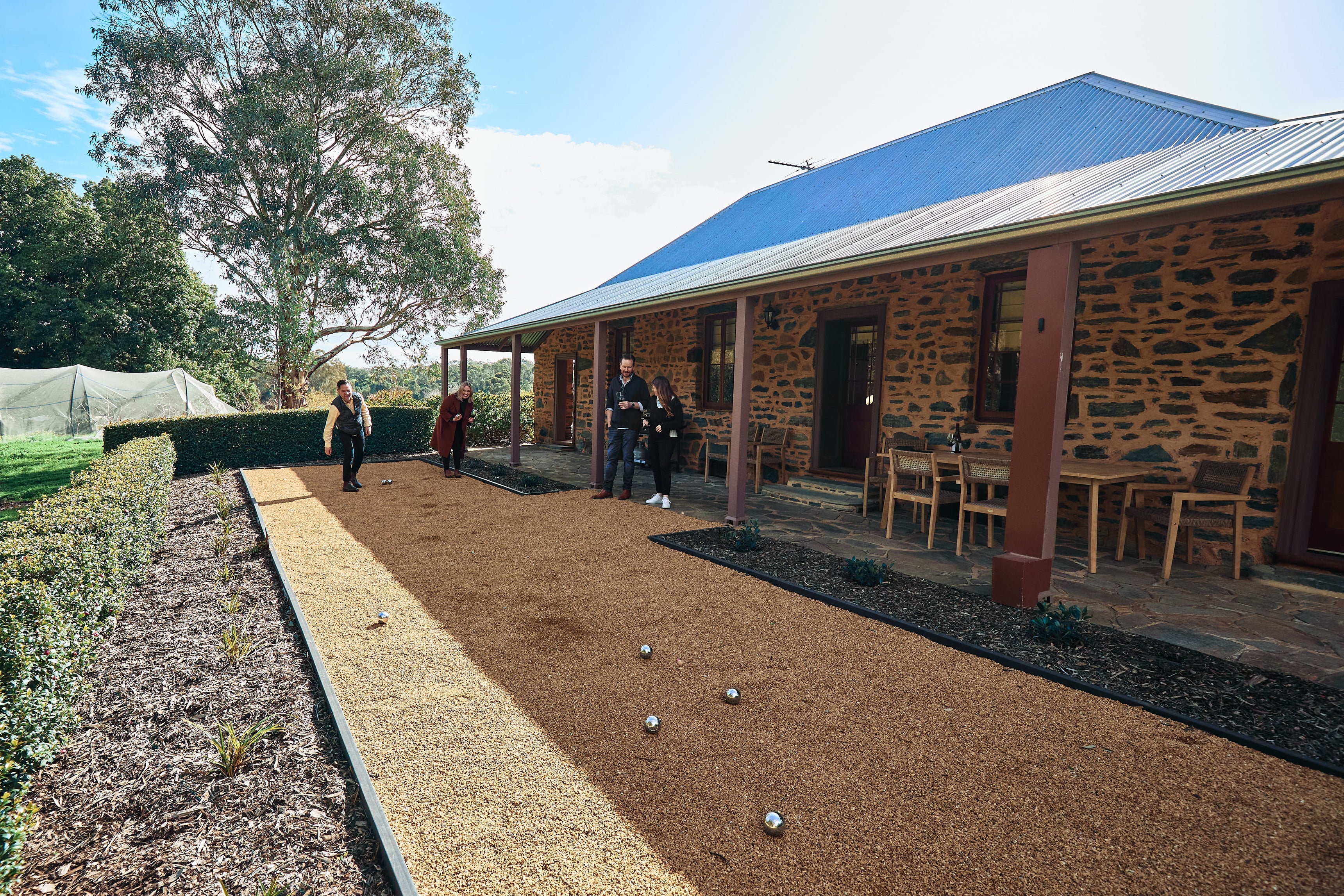 An original 19th century Barossa settler’s cottage, the property has been beautifully restored and offers three bedrooms and two bathrooms. It is surrounded by wide verandas, beautiful gardens and has an alfresco dining area, as well as an outdoor fire pit area and a bocce court.
